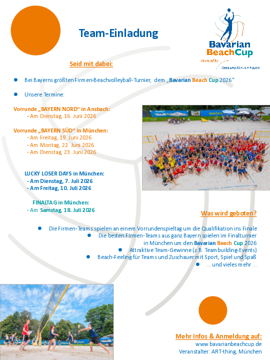 Meldet Euer Beachvolleyball-Firmenteam für Euren Wunschtermin an Eurem Standort an und erlebt gemeinsam ein sportliches Teamevent voller Action, Spaß und Teamgeist!